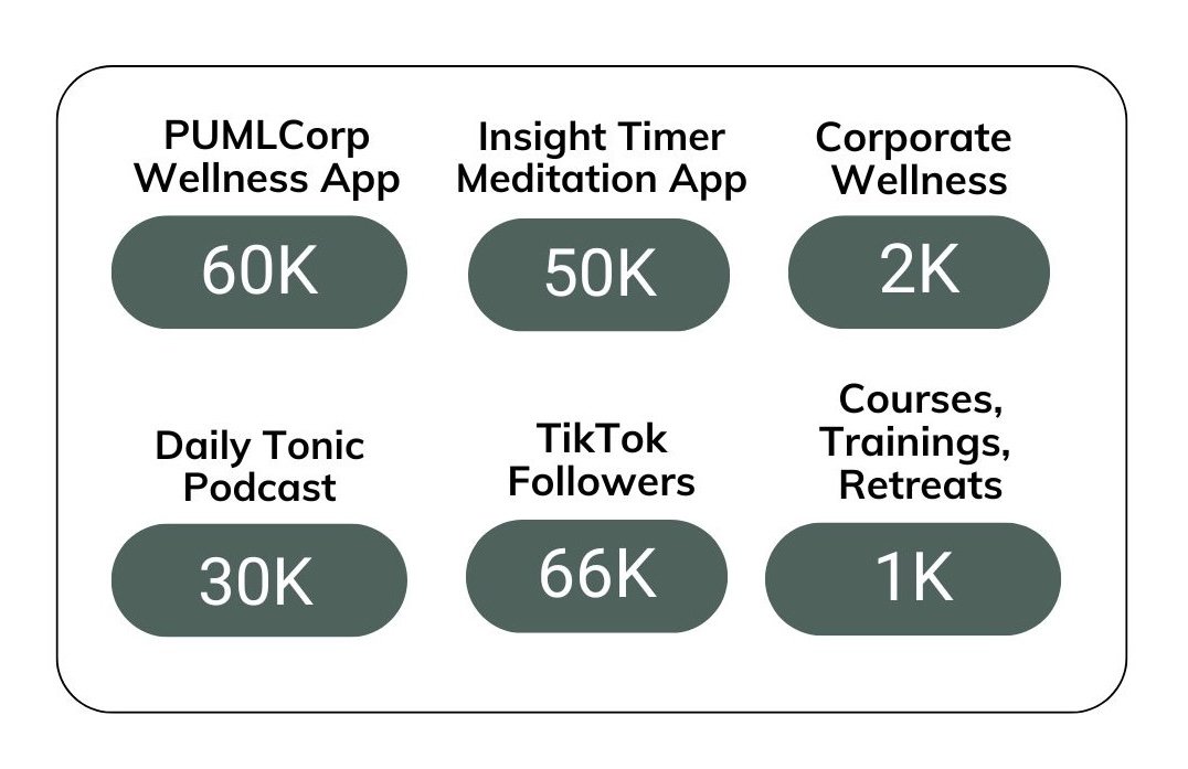 Since 2017, her meditations have served a global audience of over 100K, supporting stress reduction and improved focus. Her Sound Meditations incorporate a guided mindfulness meditation and sound bath for ultimate relaxation.